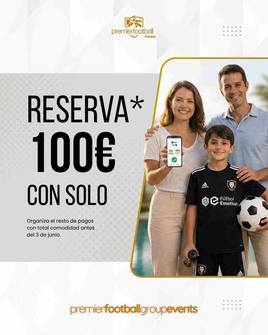 Reserva tu plaza con sólo 100€ y organiza el resto de pagos con total comodidad antes del 3 de junio.